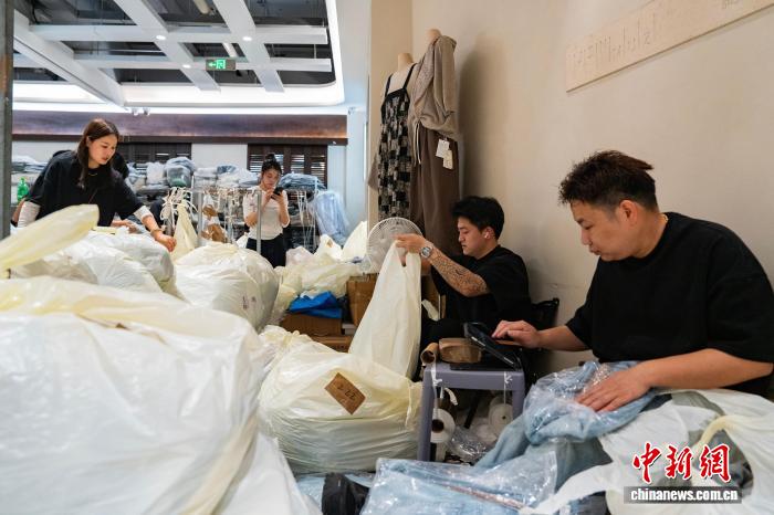 4月9日,四序青打扮特性街区内乱任务职员正在挨包收货。不日,跟着天色降暖,位于浙江杭州的“华夏打扮第1街”四序青装束特质街区已齐里上新夏拆。中新社记者 吴君毅 摄